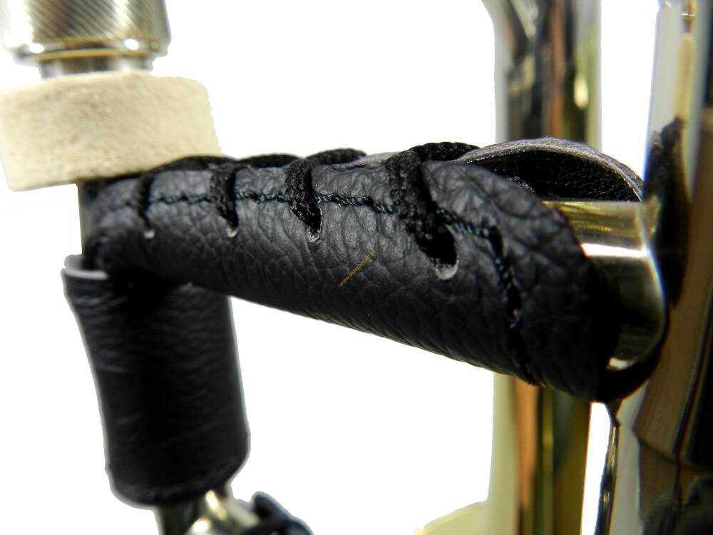 Ochraniacz do puzonu ochroni instrument przed niszczącym działaniem potu i przetarciami. Wierzchnia część jest z przyjemnej w dotyku skóry naturalnej, spodnia z materiału bezpiecznego dla powłoki instrumentu.