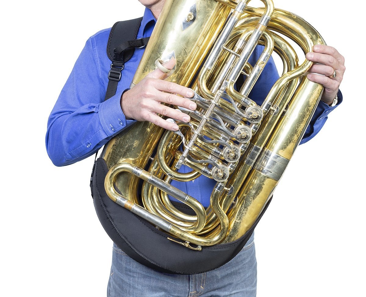 Szelki do tuby dopasowują się do kształtu ciała i równomiernie rozprowadzają ciężar instrumentu, jednocześnie absorbując energię ruchów. Ochraniacz z neoprenu tworzy rodzaj wygodnego i stabilnego jarzma, noszonego w poprzek górnych pleców i ramion.