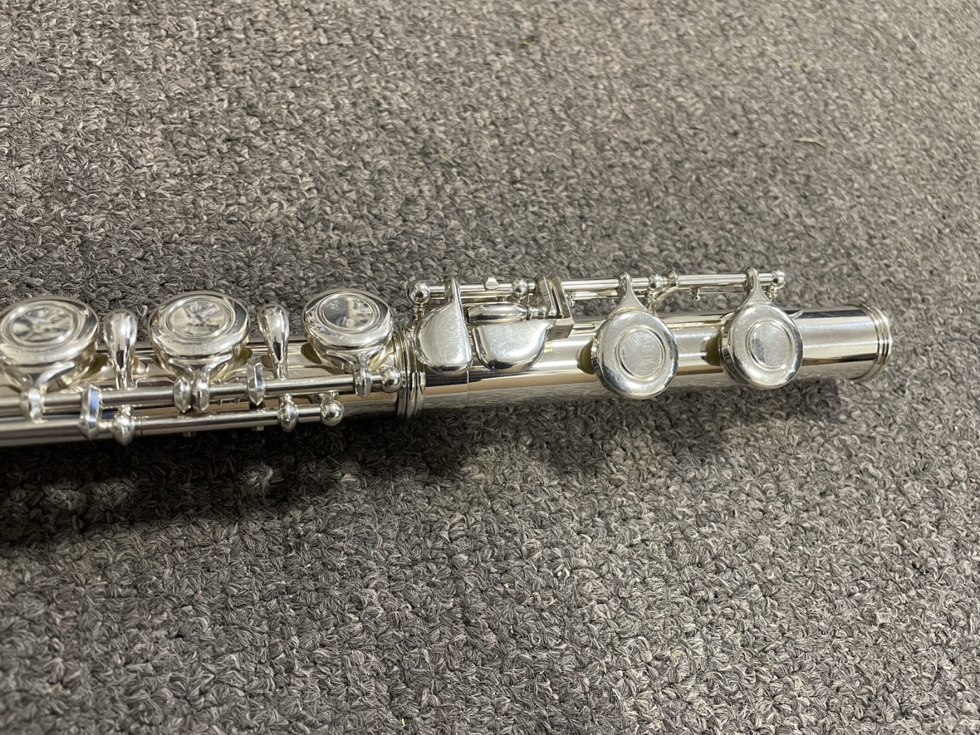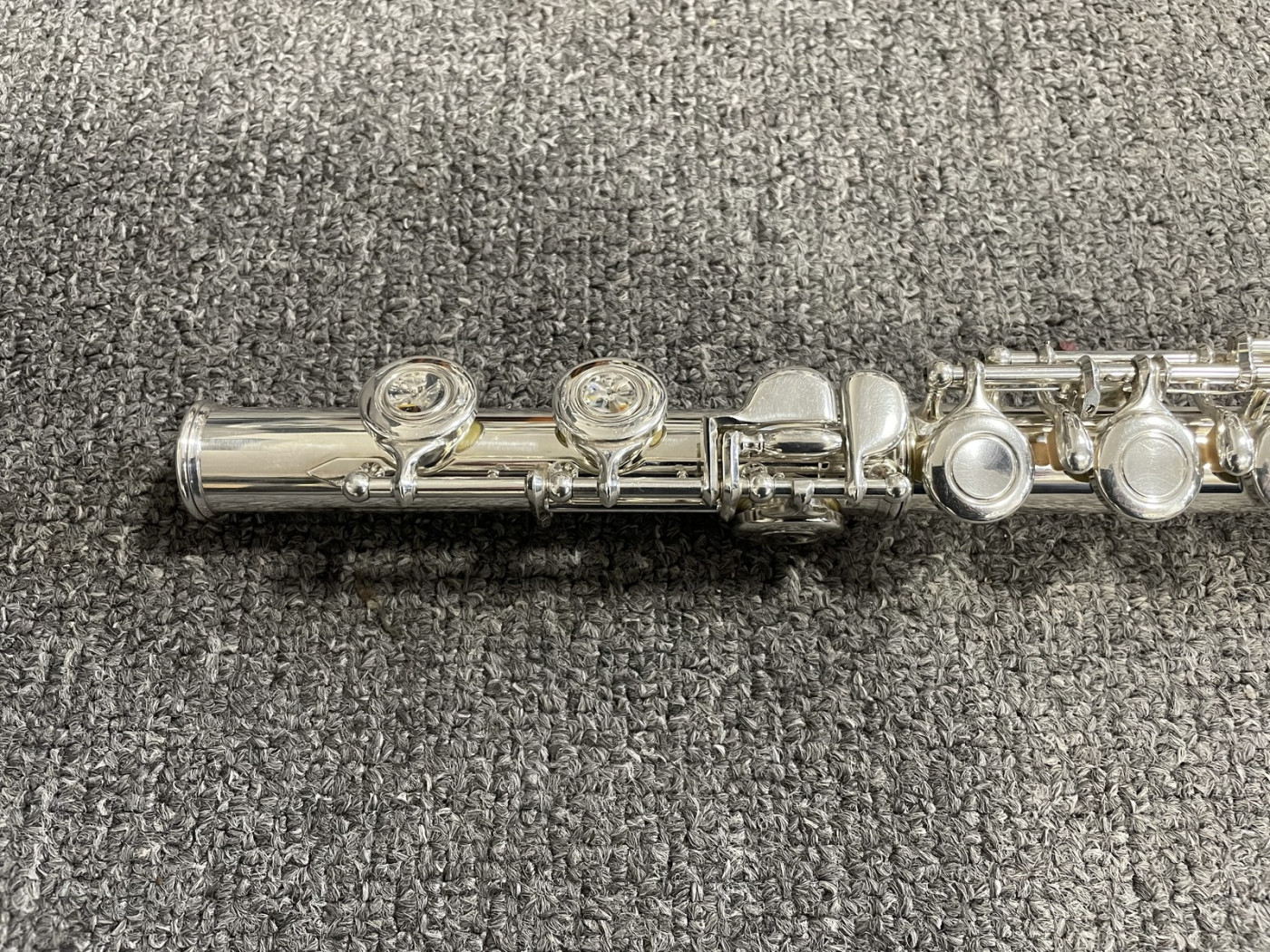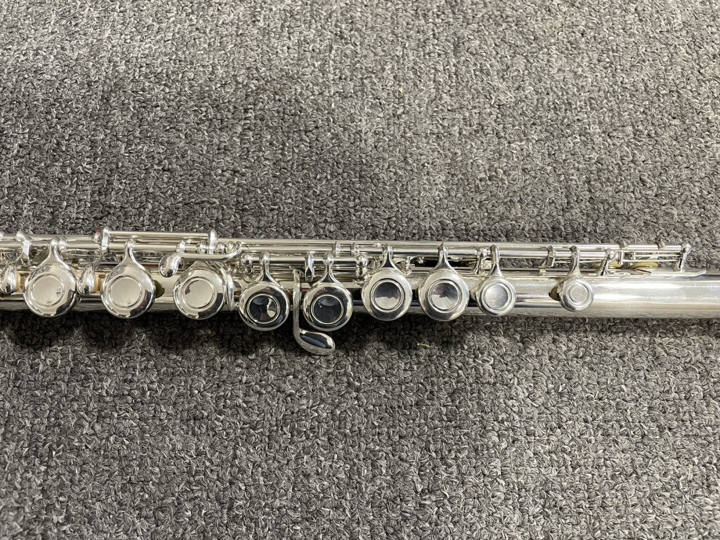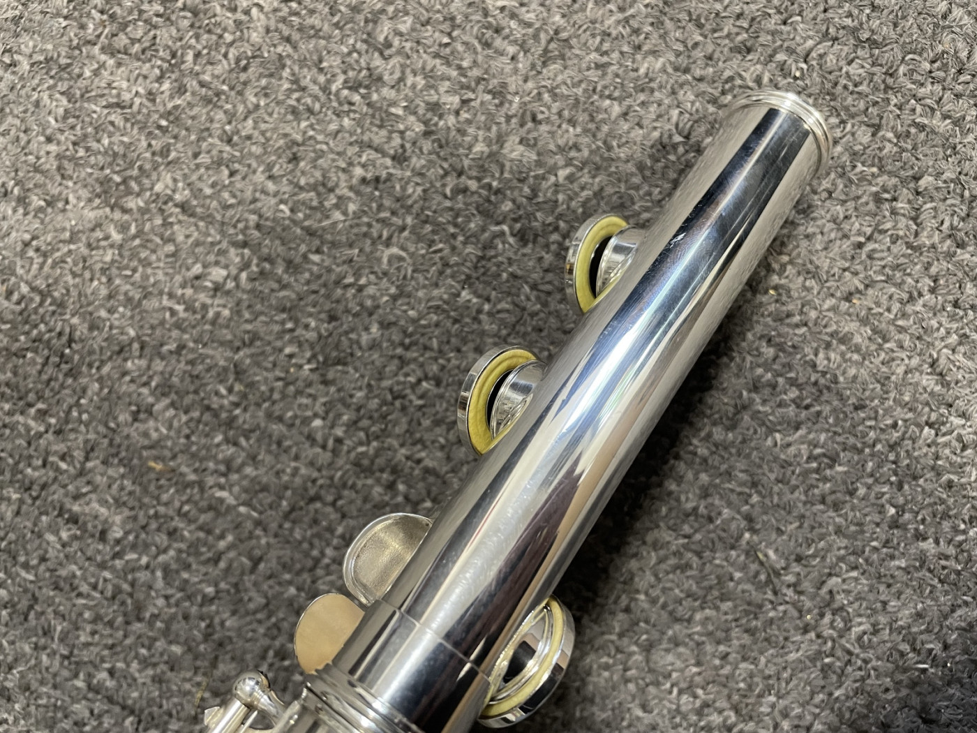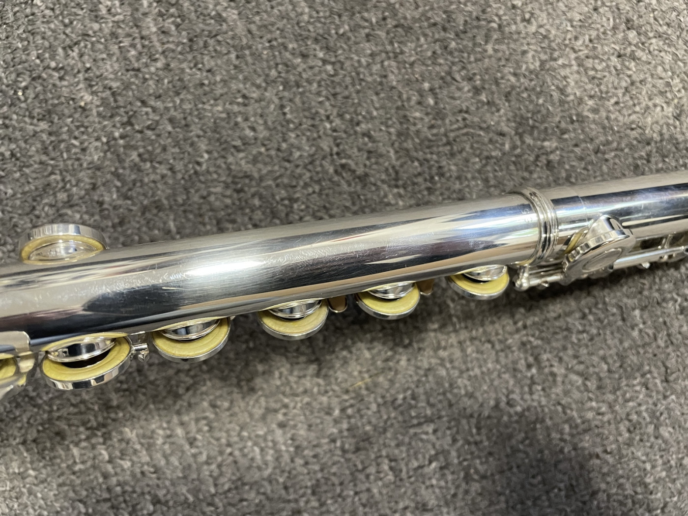 Instrument posiada minimalne zarysowania powłoki srebra. Praktycznie nie widoczne na zdjęciu. Poduszki są w bardzo dobrym stanie. Jest wyregulowany i gra bardzo dobrze.