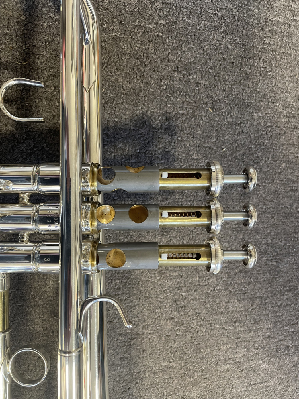 Tłoki są w znakomitym stanie, kompresja - znakomita. Instrument pozwala bardzo lekko wydobywać dźwięk i idealnie stroi. Praktycznie nie nosi żadnych śladów użytkowania. Wszystkie krągliki płynnie pracują.