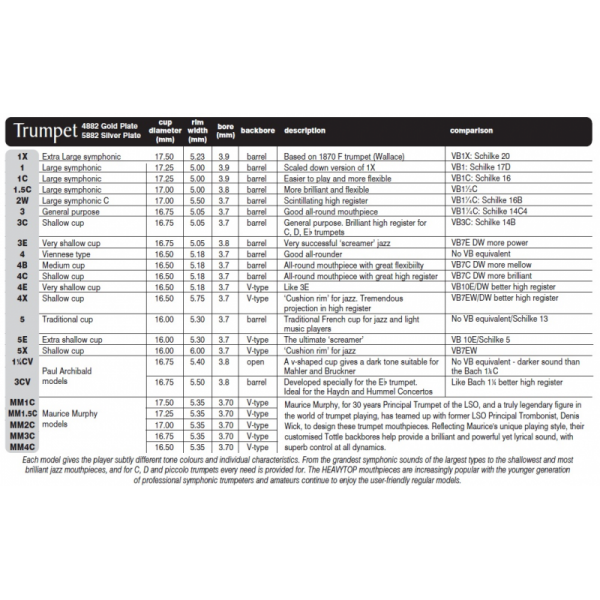 Bardzo dobrej jakości, wygodny ustnik do trąbki o szerokim zastosowaniu - rozmiar 4X.